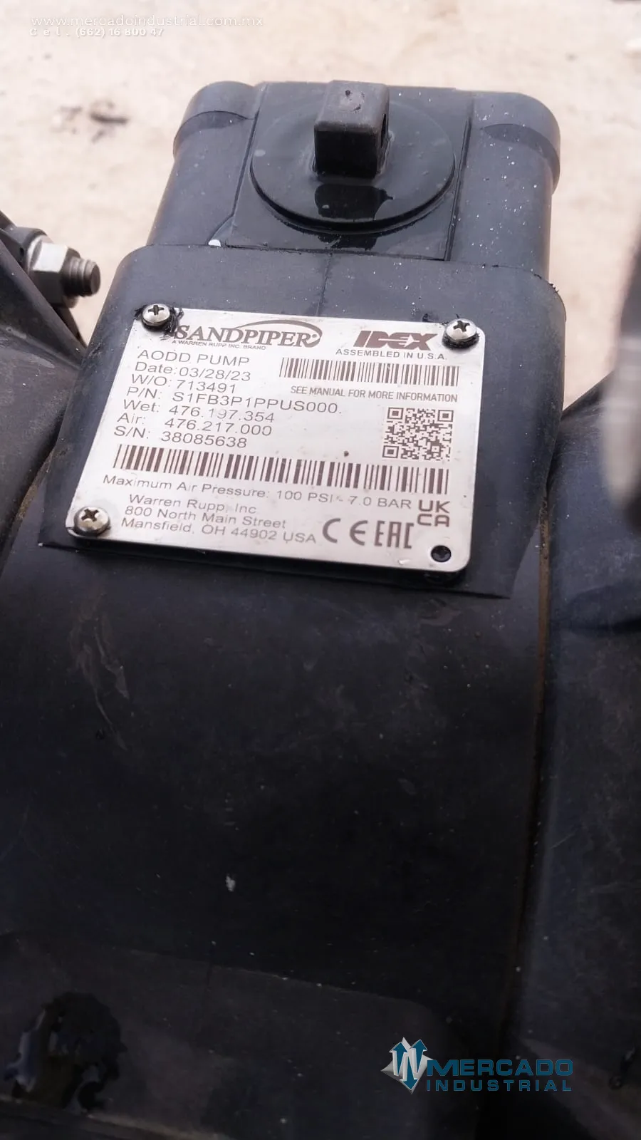 Bomba de diafragma 1" modelo S1FB3P1PUS000 marca SANDPIPER - Mercado Industrial