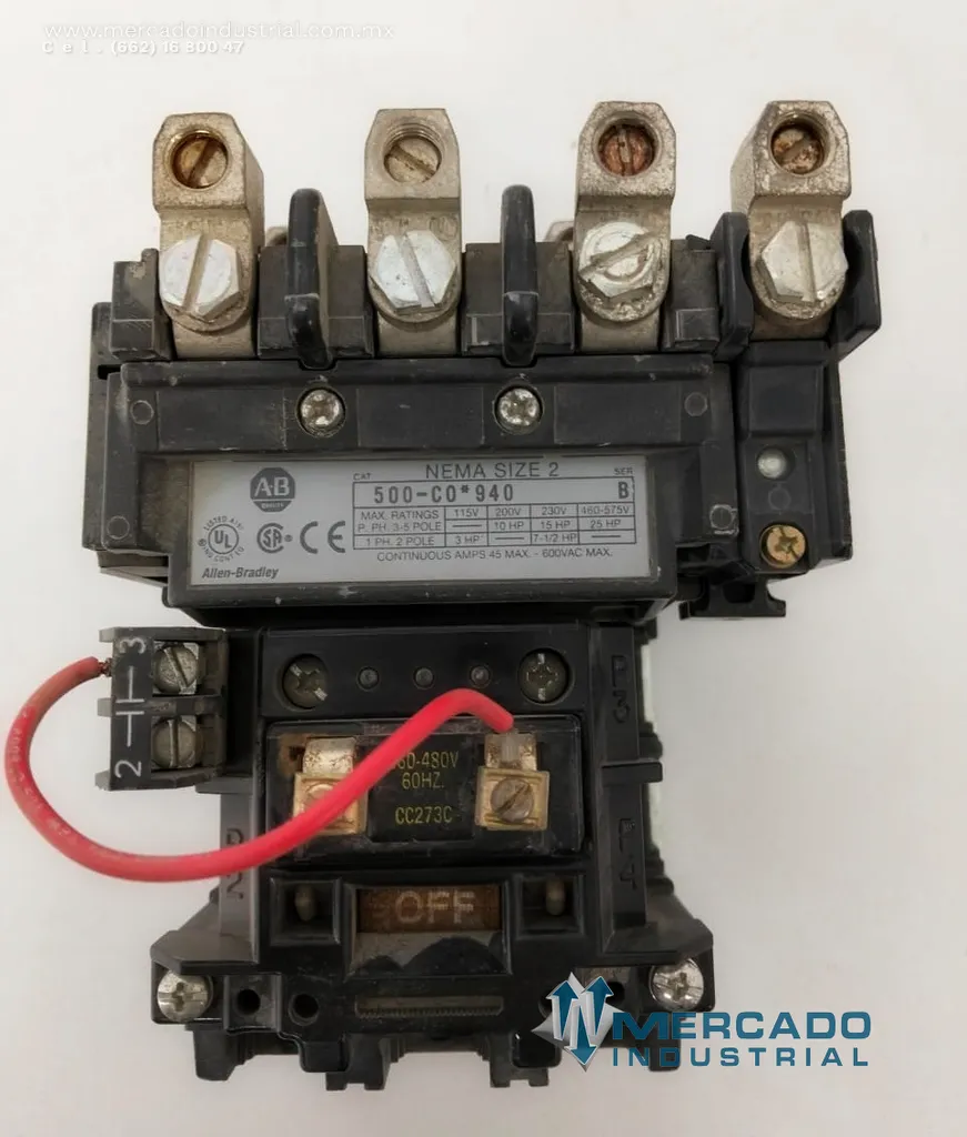 Contactor eléctrico industrial 480VAC 45 AMP modelo 500-C0*940 marca Allen-Bradley - Mercado Industrial