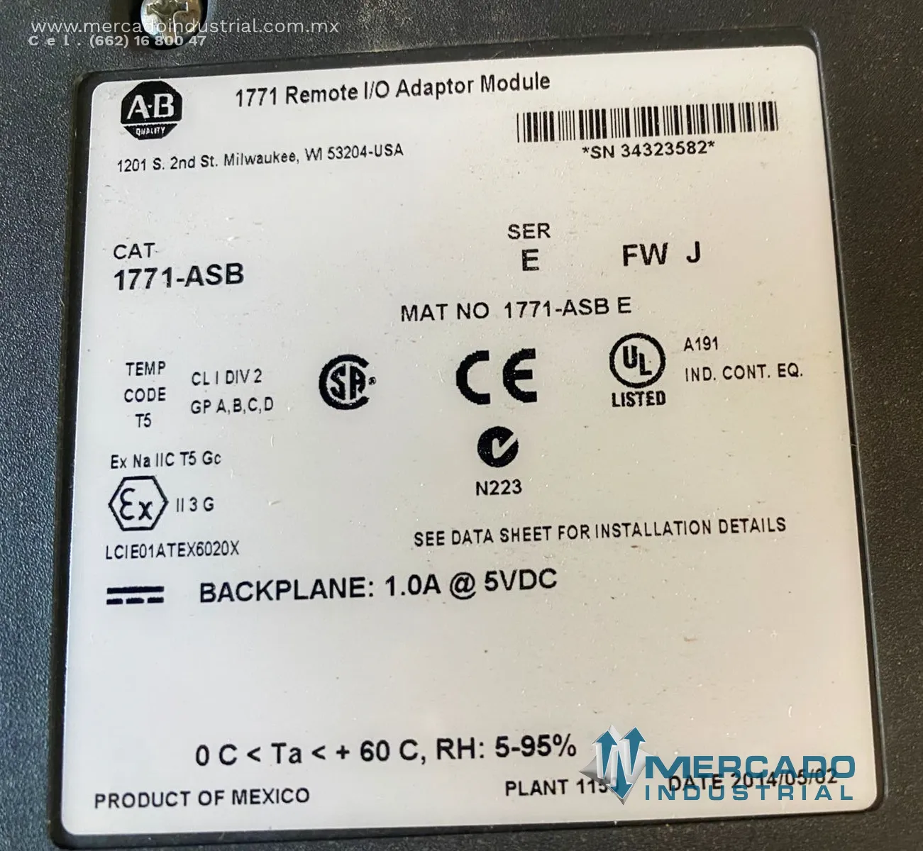 Módulo adaptador remoto I/O 5 V DC 1 A parte 1771-ASB marca Allen-Bradley - Mercado Industrial