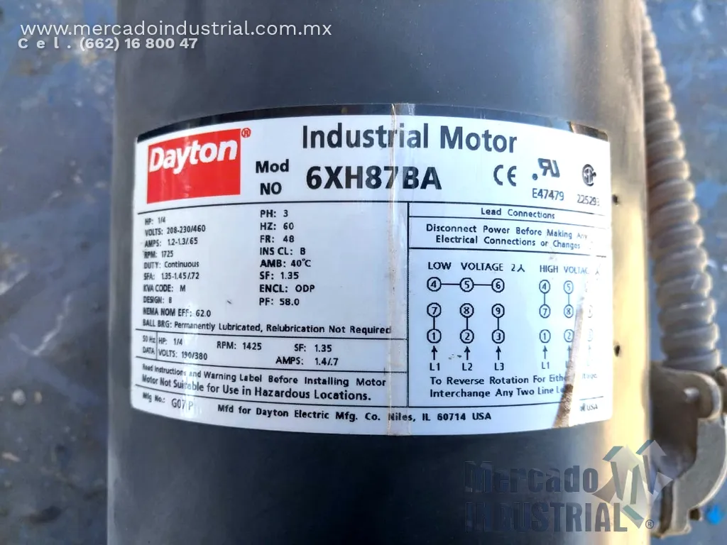 Motor eléctrico 1/4 HP 4 polos 1725 RPM marca DAYTON - Mercado Industrial
