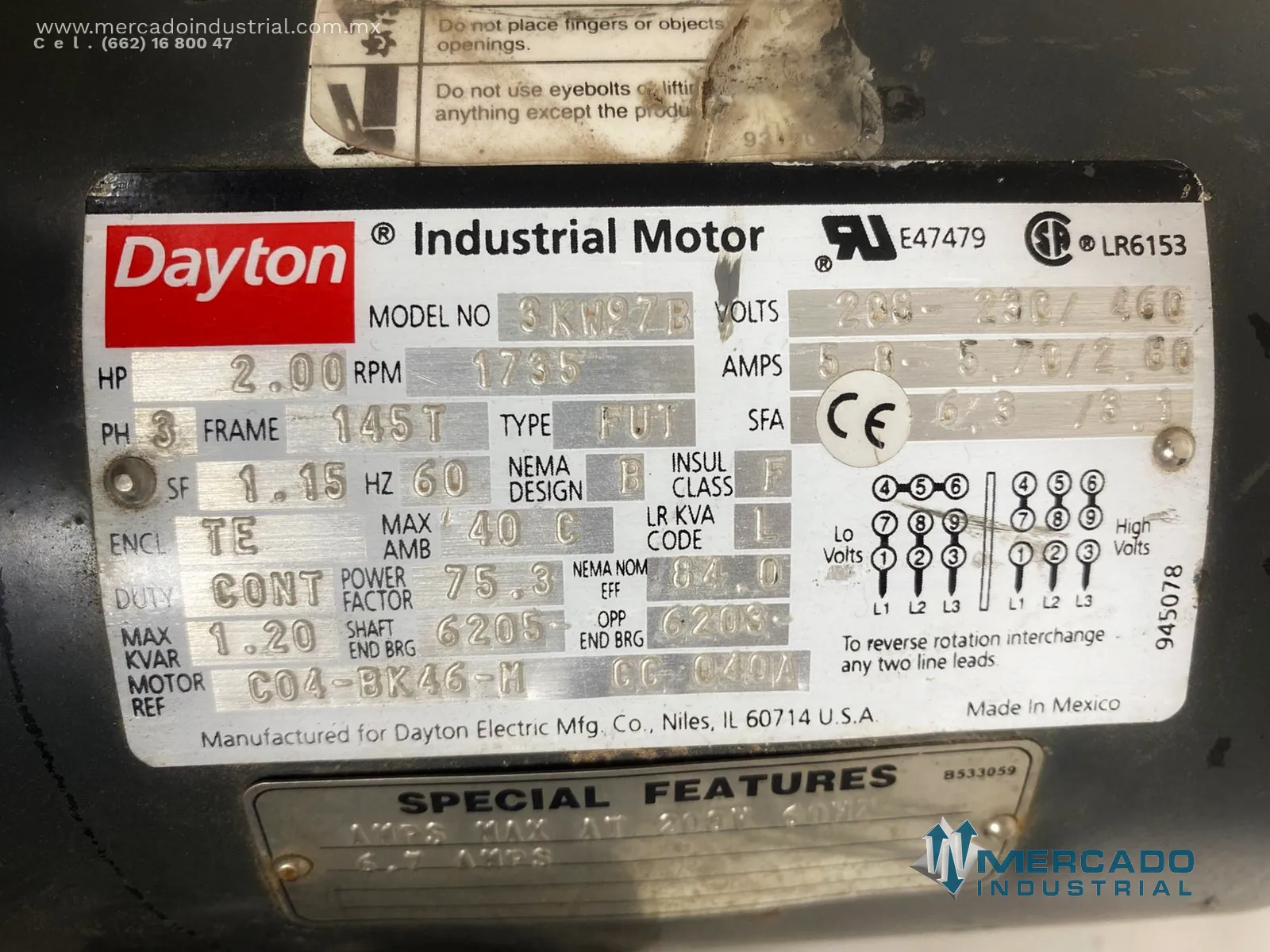 Motor eléctrico 2 HP 4 polos 1735 RPM marca Dayton - Mercado Industrial