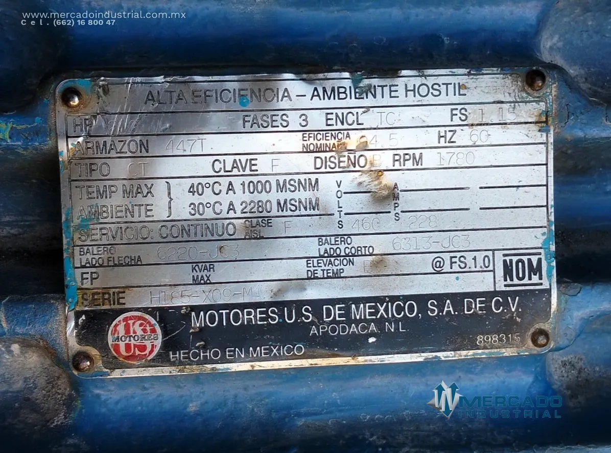Motor eléctrico 200 HP 4 polos 1780 RPM marca MOTORES U.S - Mercado Industrial