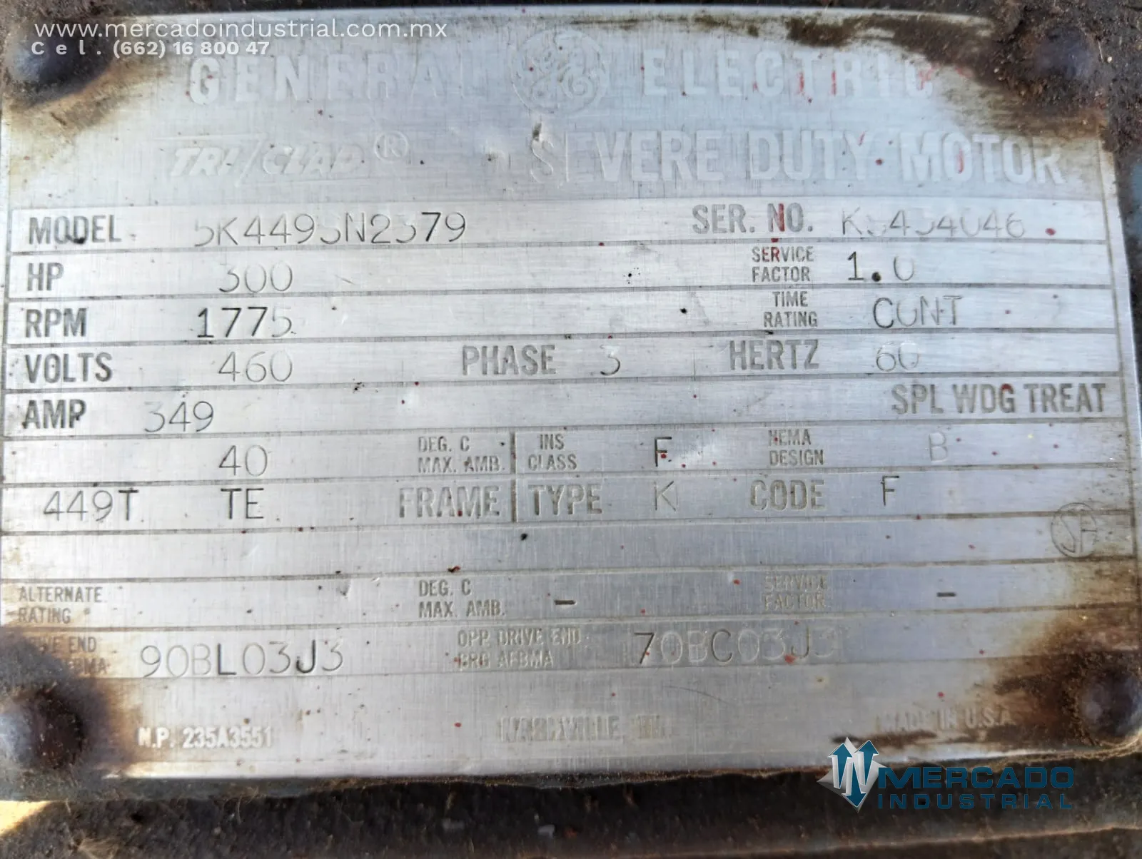 Motor eléctrico 300 HP 4 polos 1775 RPM marca GENERAL ELECTRIC - Mercado Industrial