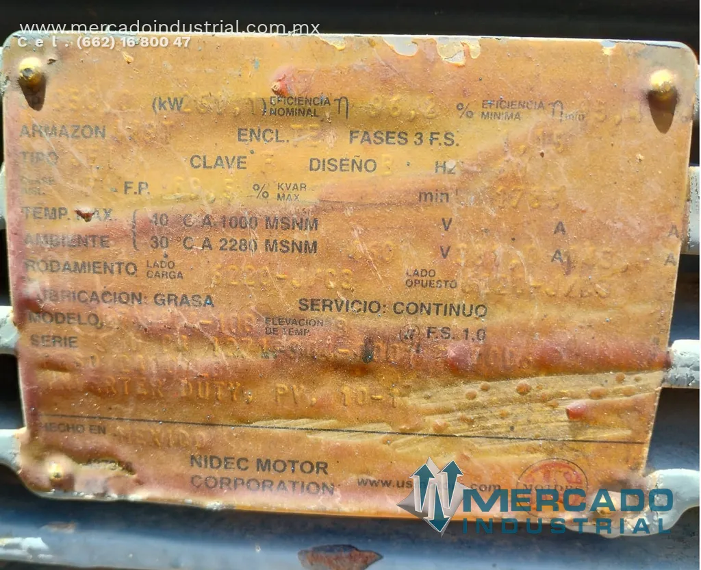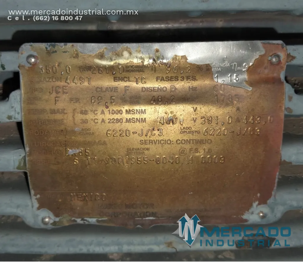 Motor eléctrico 350 HP 4 polos 1785 RPM marca US MOTORS - Mercado Industrial