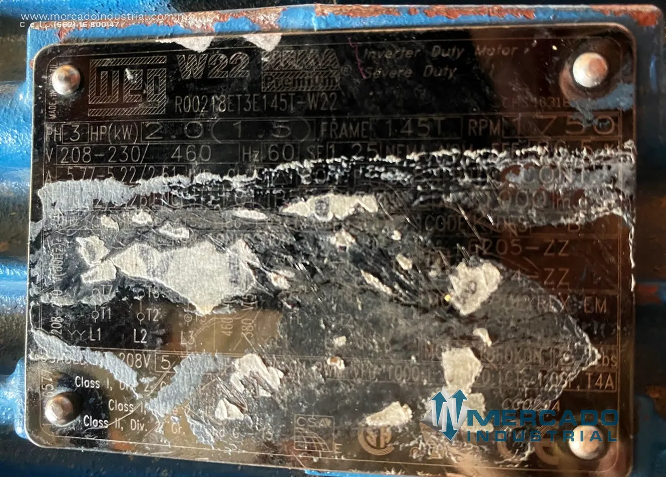 Motor eléctrico trifásico 2 HP 4 polos 1750 RPM marca WEG - Mercado Industrial