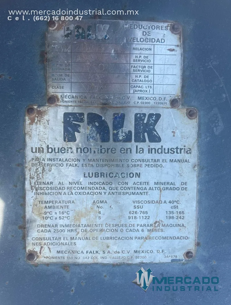Reductor 40 HP ratio 175 modelo 2110Y3-L marca FALK - Mercado Industrial
